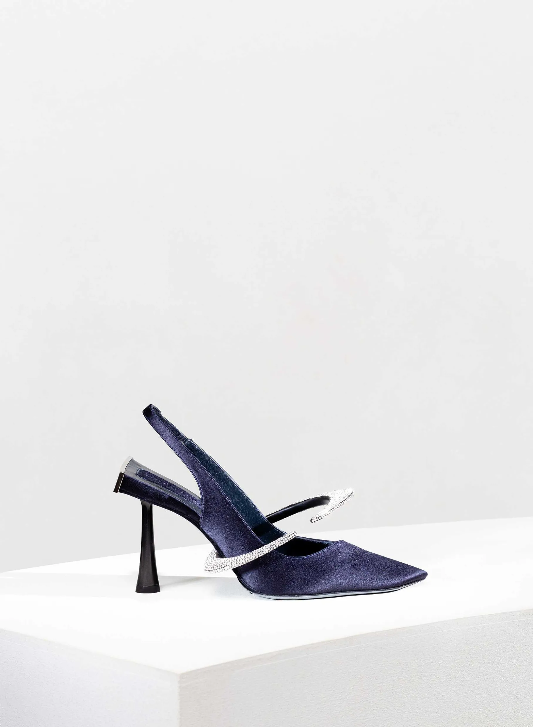 Elsa Is A Slingback Shoe With A Satin-Covered Structure. The Heel Of This Object D’Heart Recalls The Shape Of My Iconic Ariel. The Aluminum Cuff-Shaped Detail Is What Makes This Shoe A True Sculpture.
