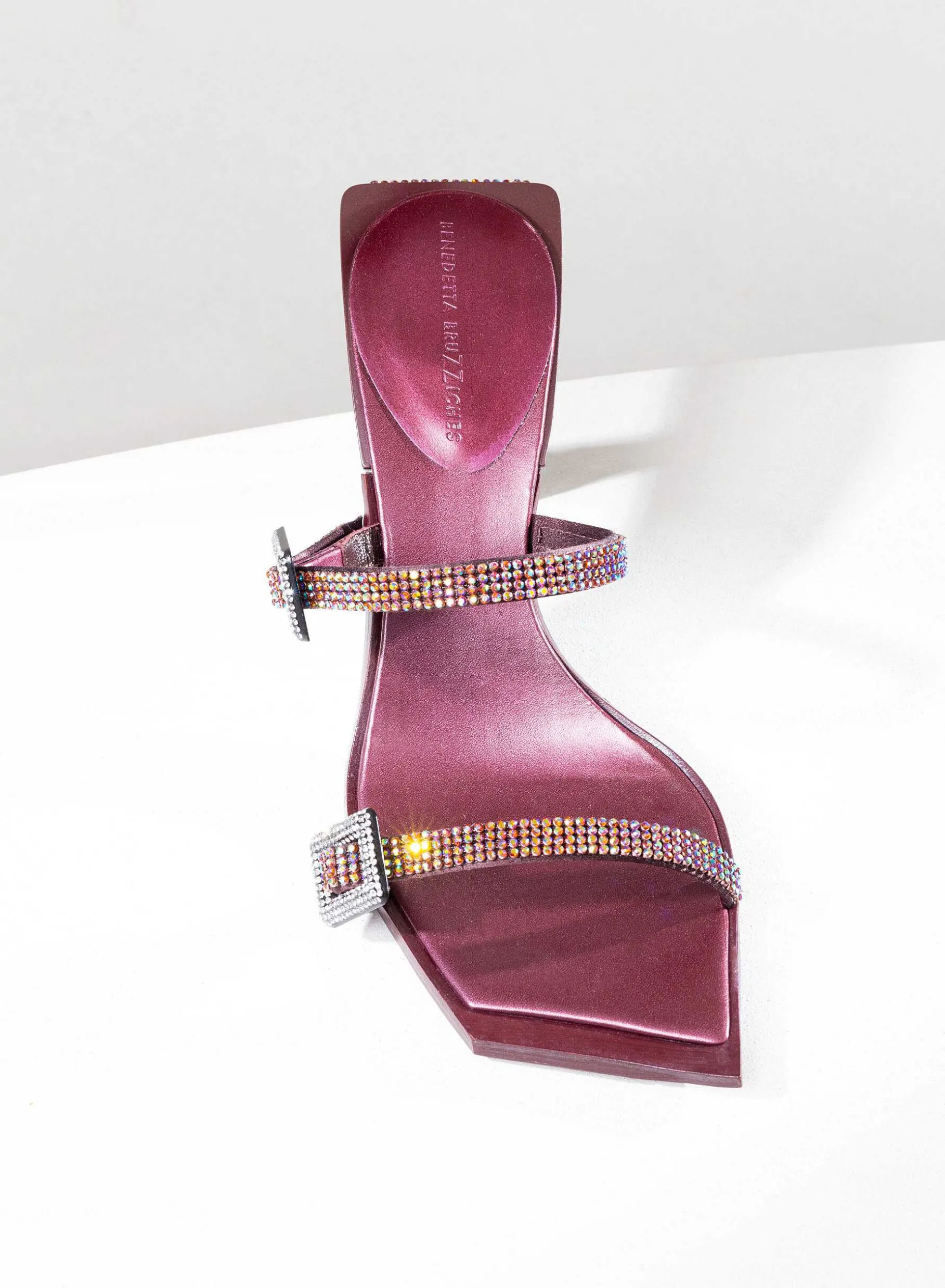 Two Satin Straps Adorned With Crystal Mesh Elegantly Wrap Around The Foot, While The Dynamically Inclined Heel Becomes An Unexplored Stage For Light.