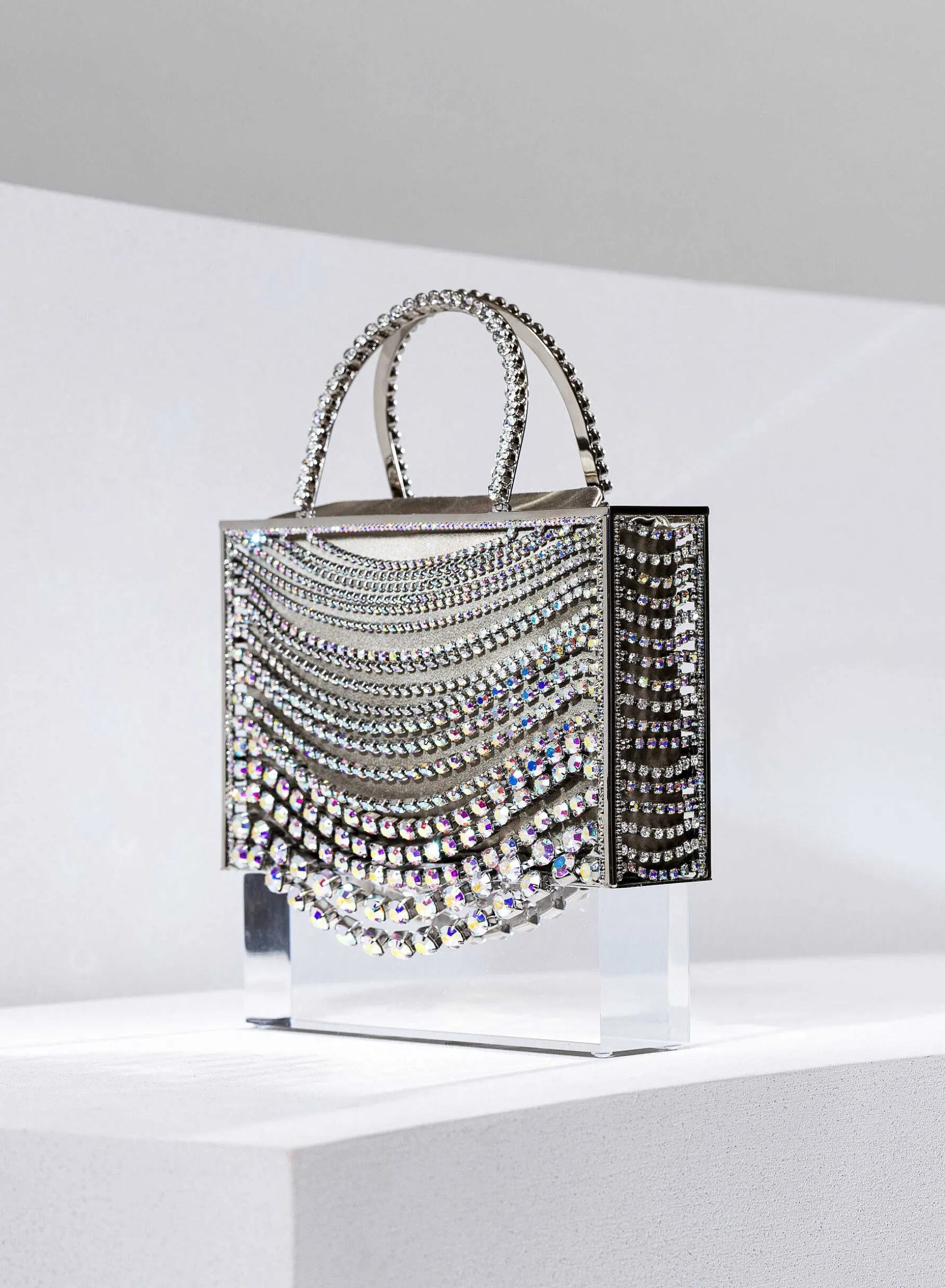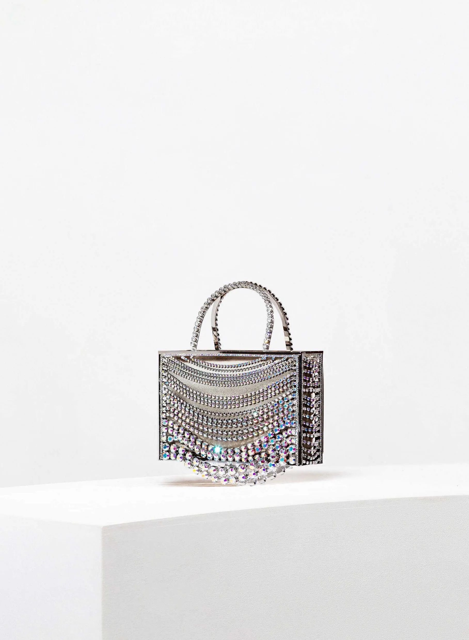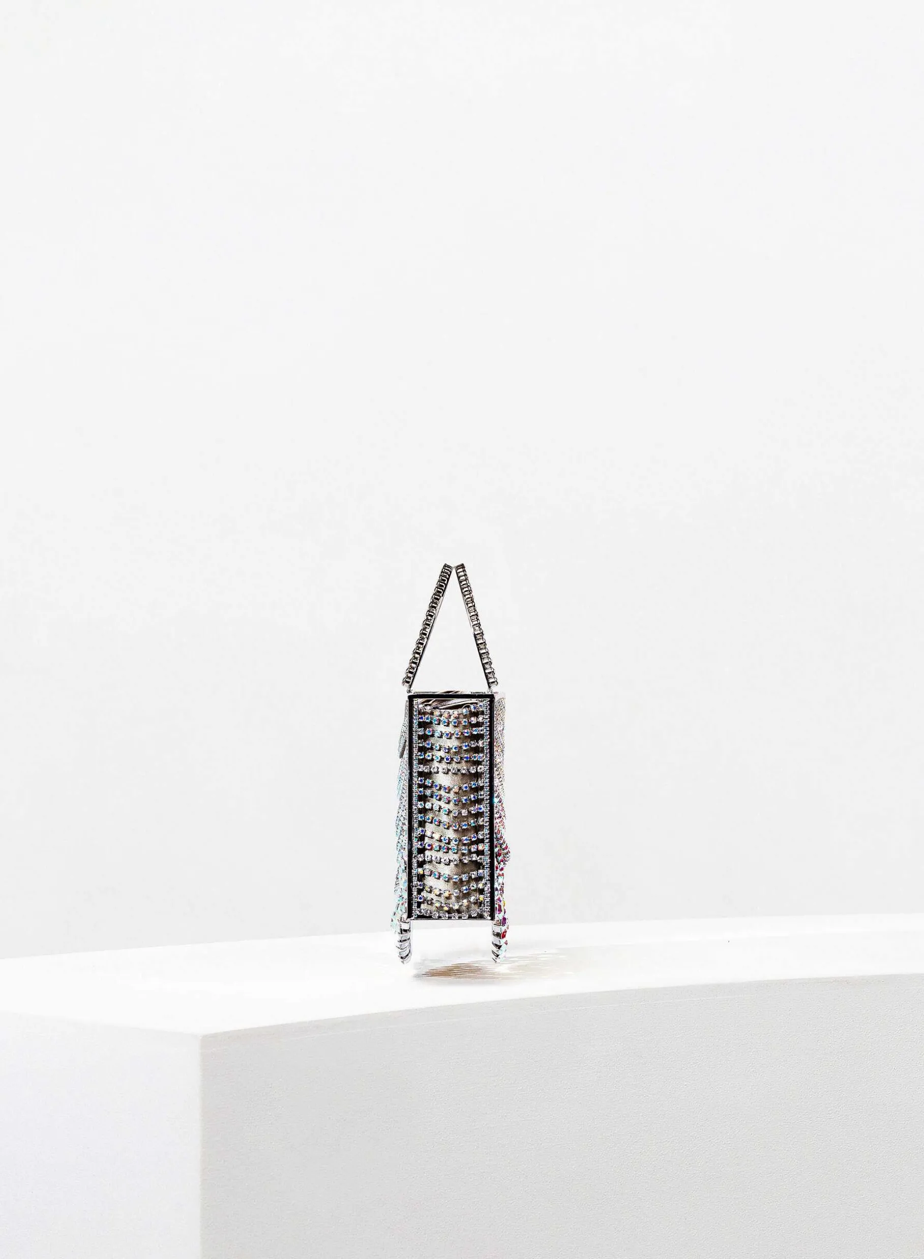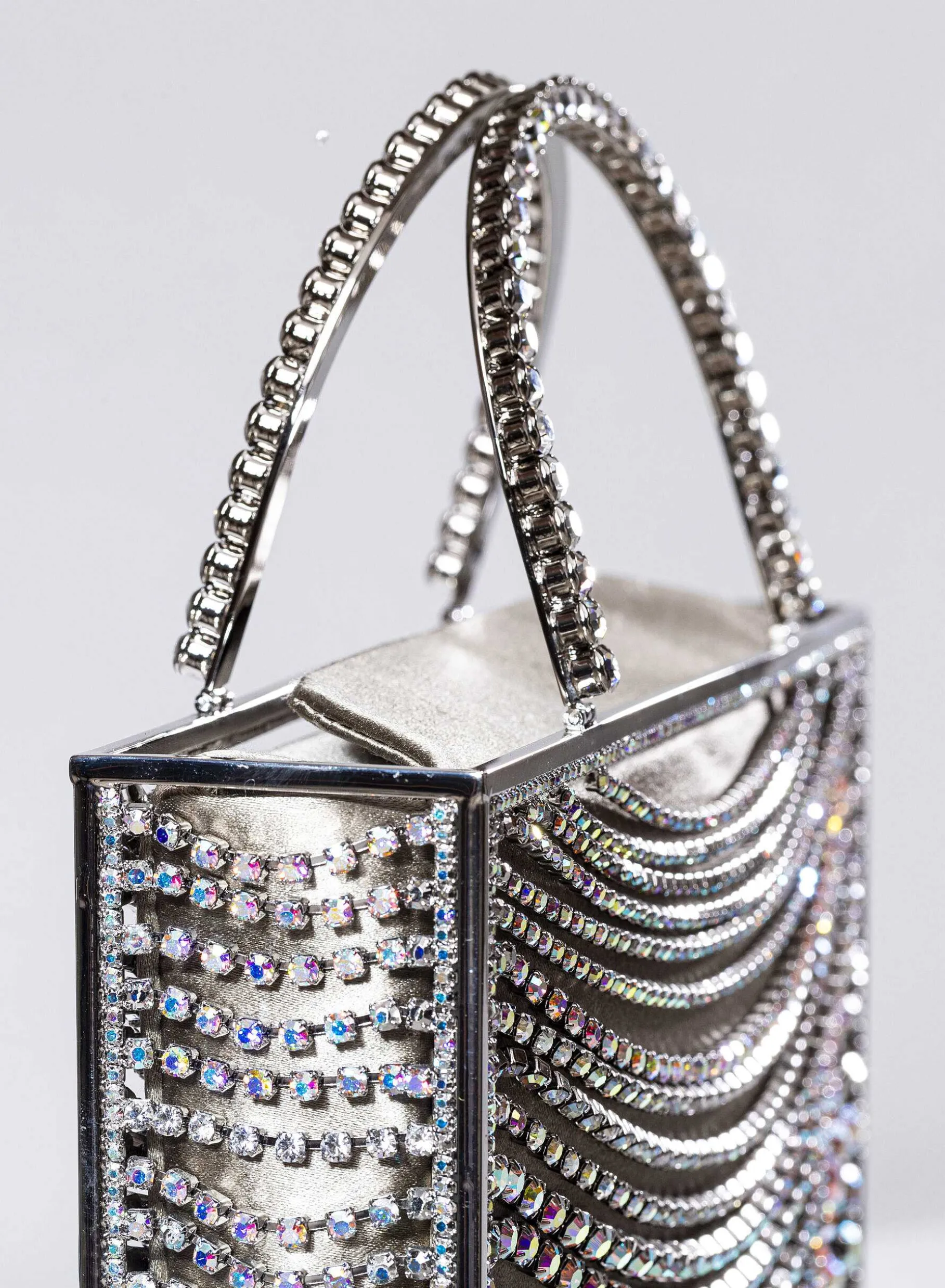The Micro Tote Giulietta Degli Spiriti Is Completely Handmade By Our Artisan Goldsmiths Of Arezzo, Adorned With An Elegant Degradation Of Chains Of Crystals Of Various Sizes. Inside It Houses A Bag Of Soft Organza To Contain Personal Belongings.