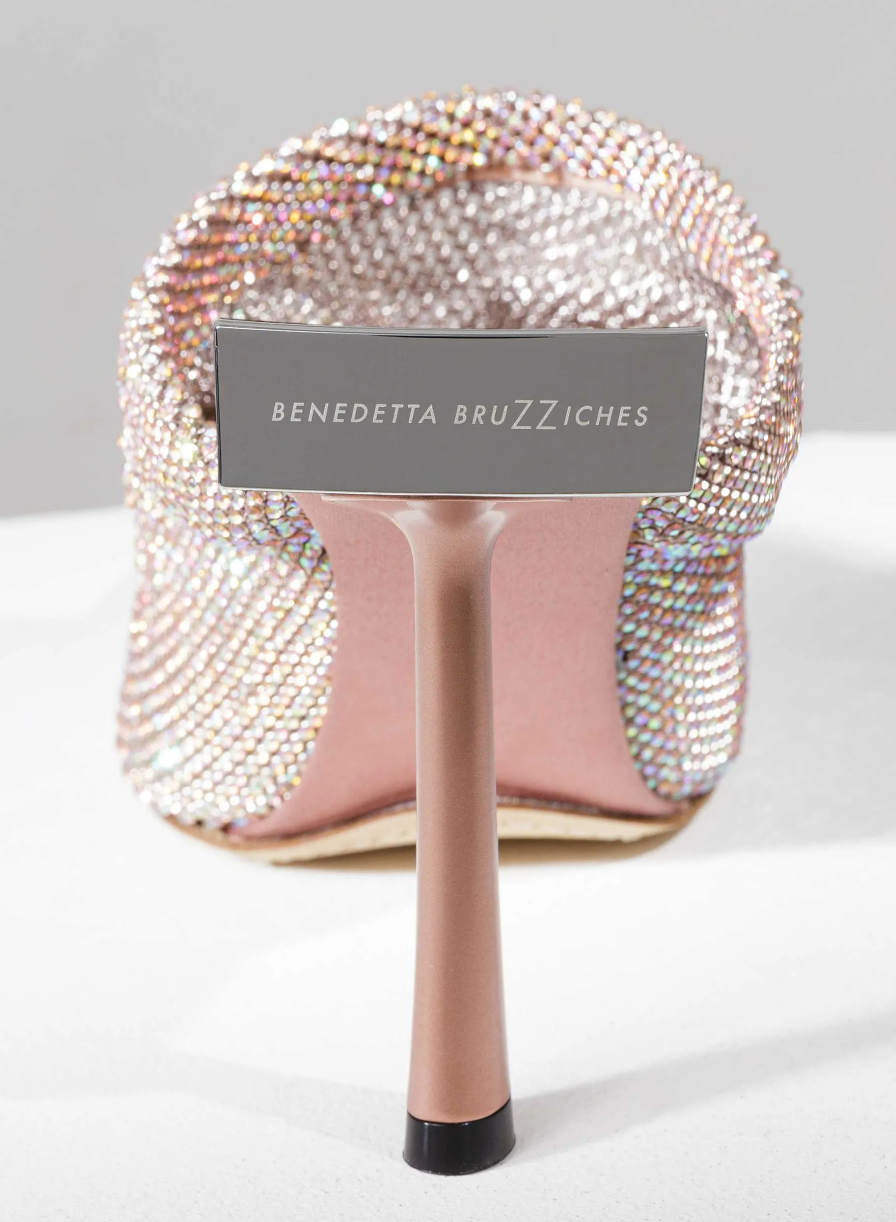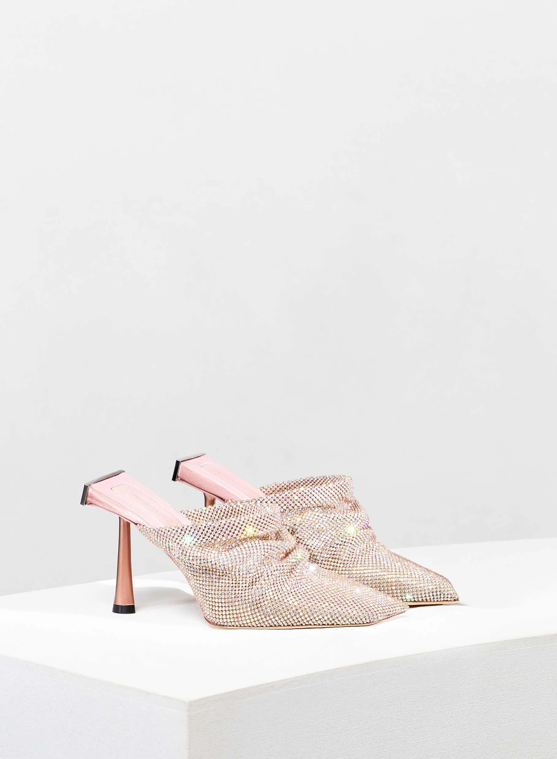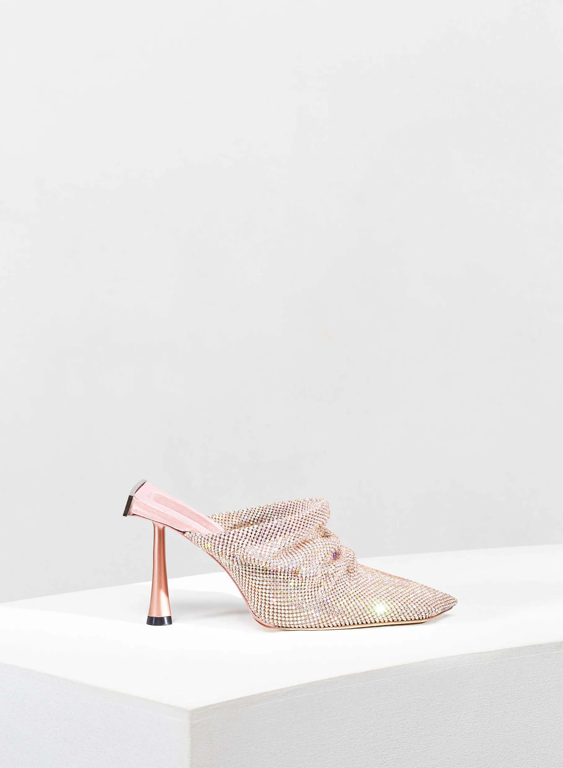 Goliarda Is A Creation With A Satin-Covered Structure And Crystal Mesh Upper. The Heel Of This Object D’Heart Recalls The Shape Of My Iconic Ariel. The Elegant Metal Detail On The Back Highlights The Sculpture-Like Structure Of The Shoe.