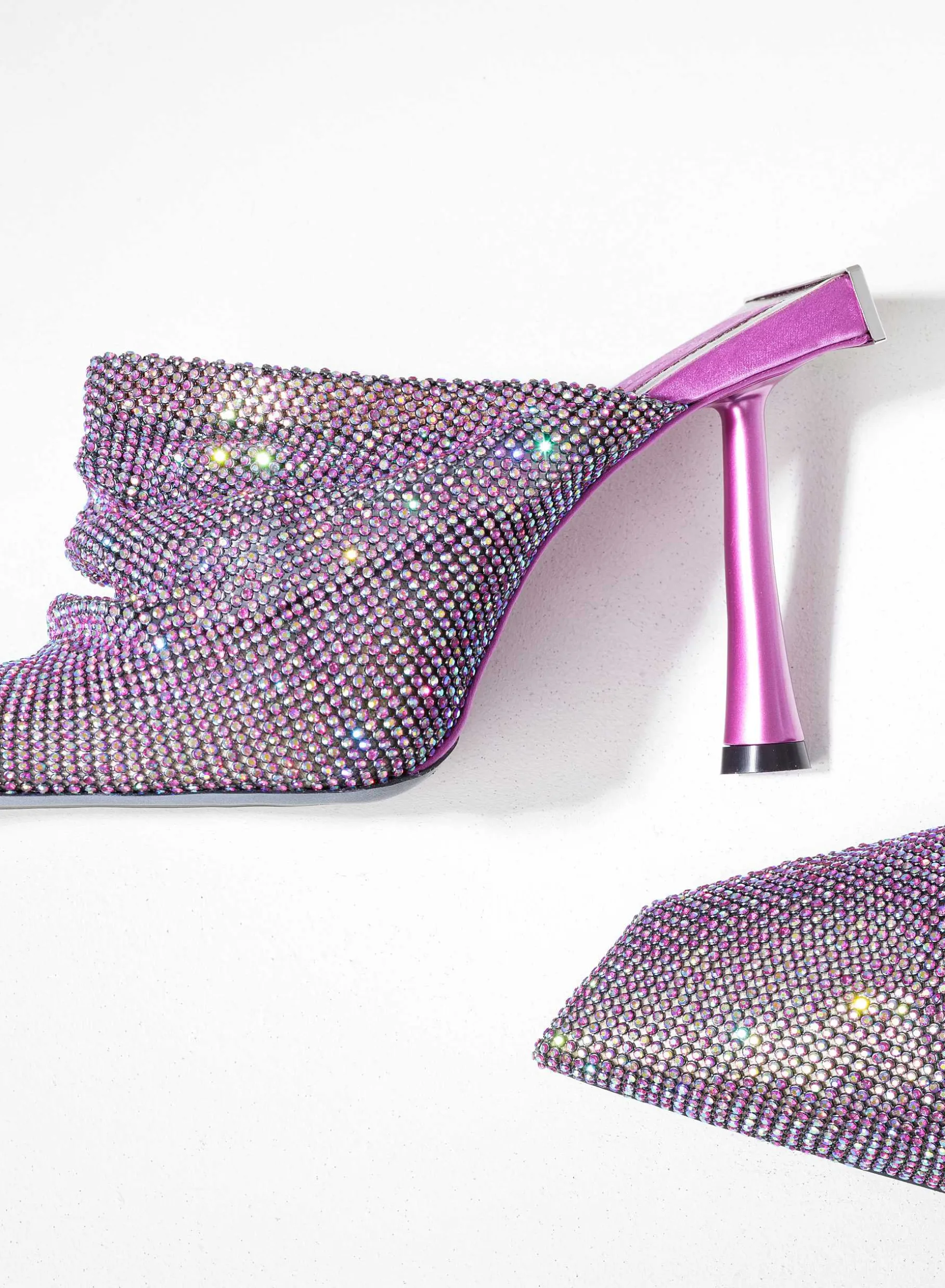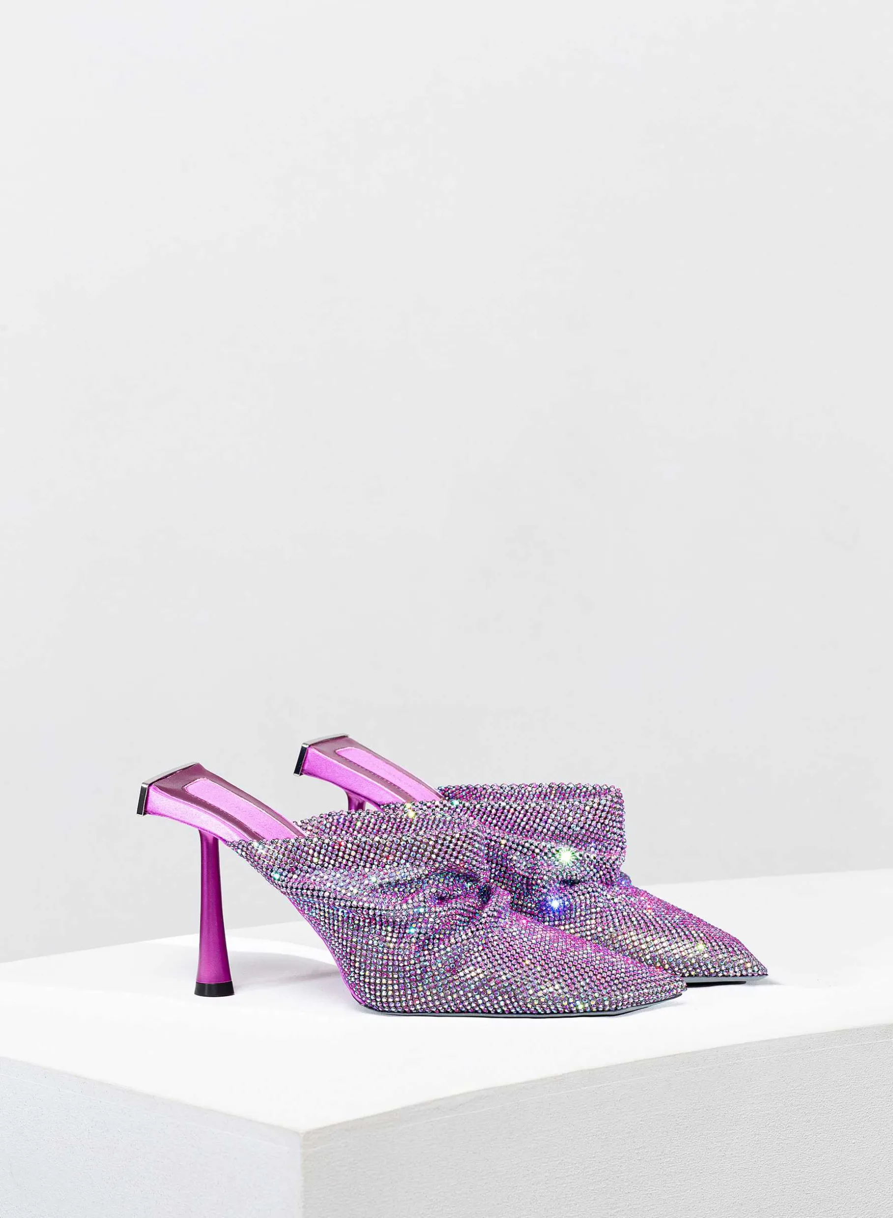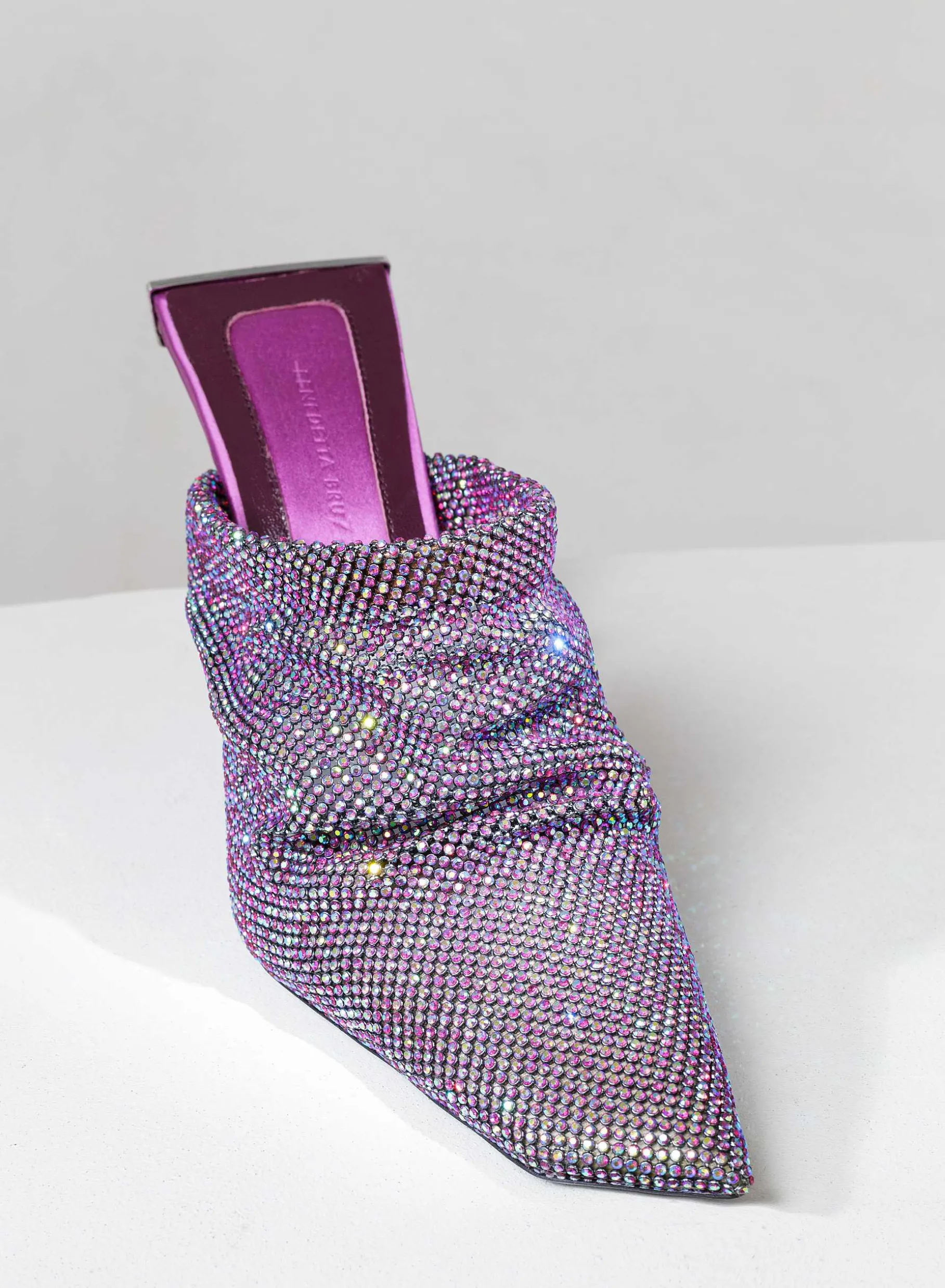 Goliarda Is A Creation With A Satin-Covered Structure And Crystal Mesh Upper. The Heel Of This Object D’Heart Recalls The Shape Of My Iconic Ariel. The Elegant Metal Detail On The Back Highlights The Sculpture-Like Structure Of The Shoe.