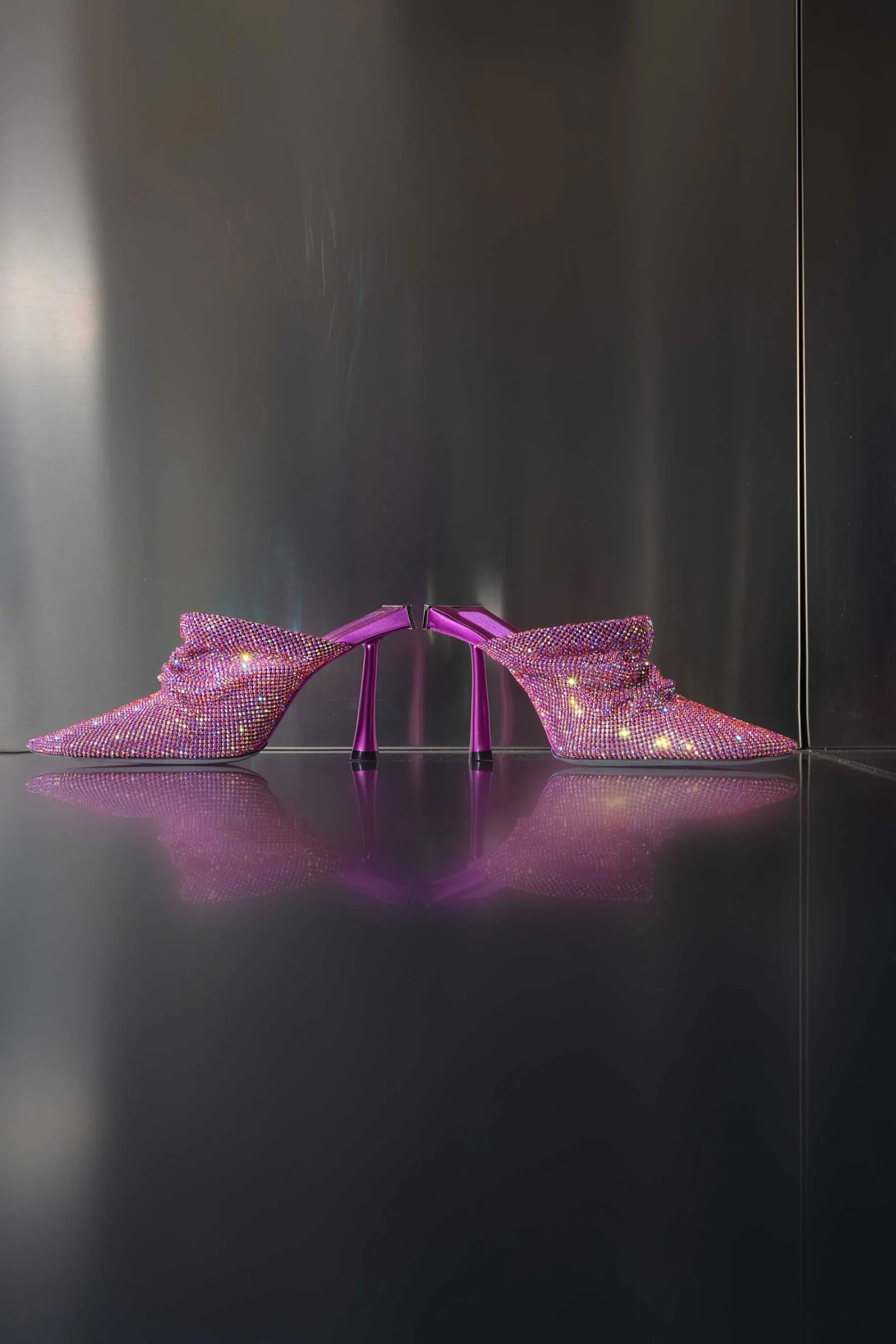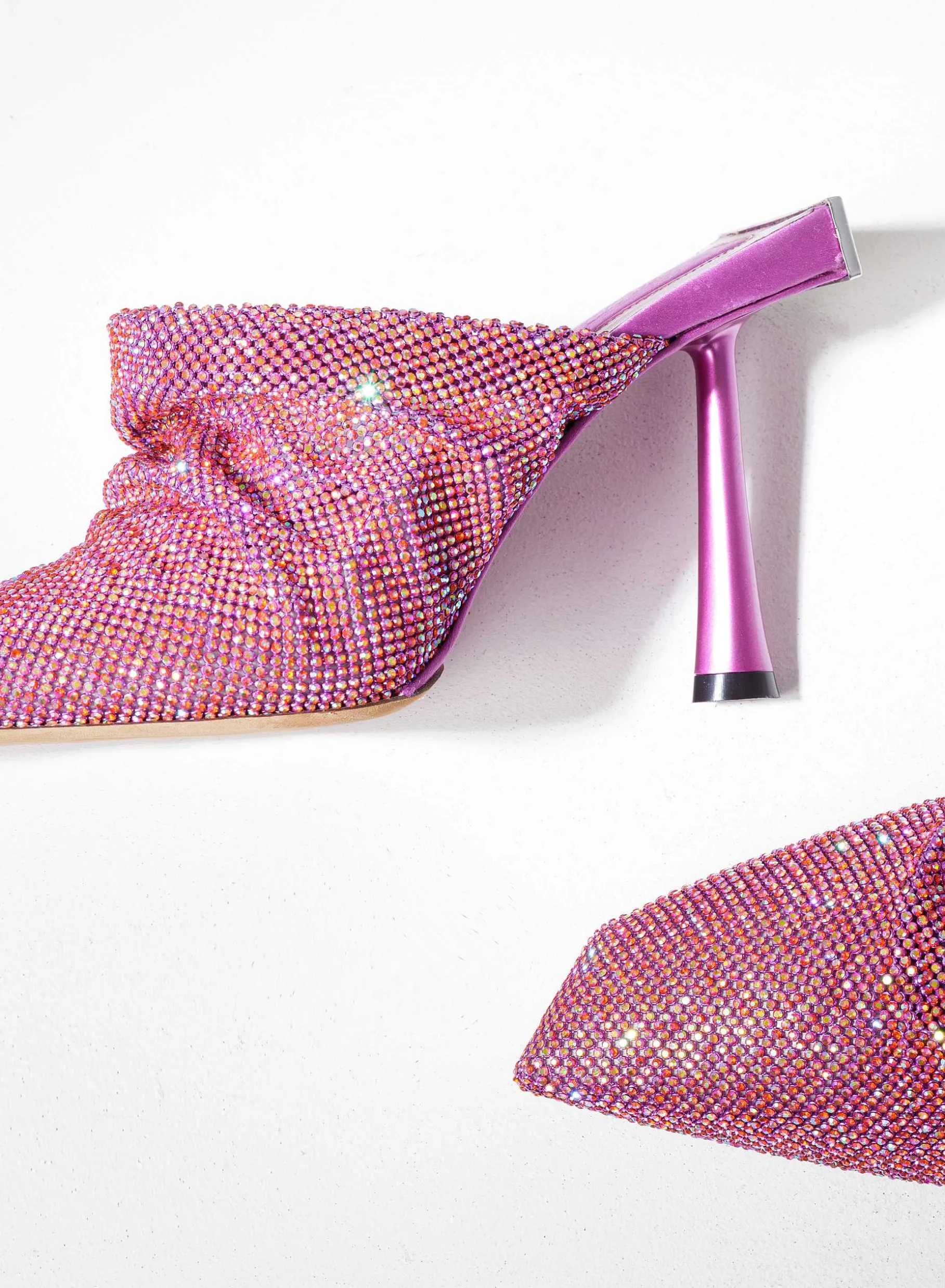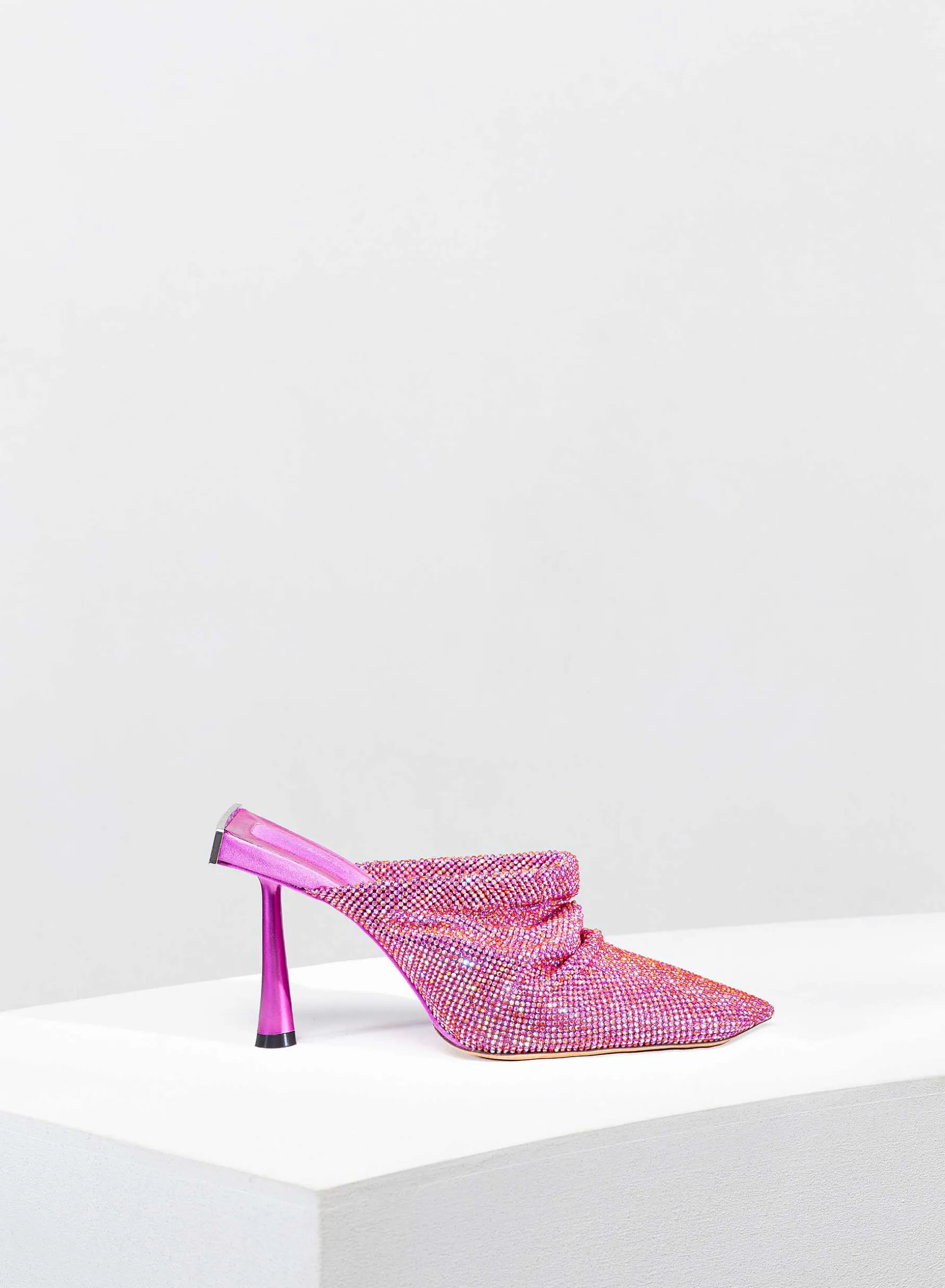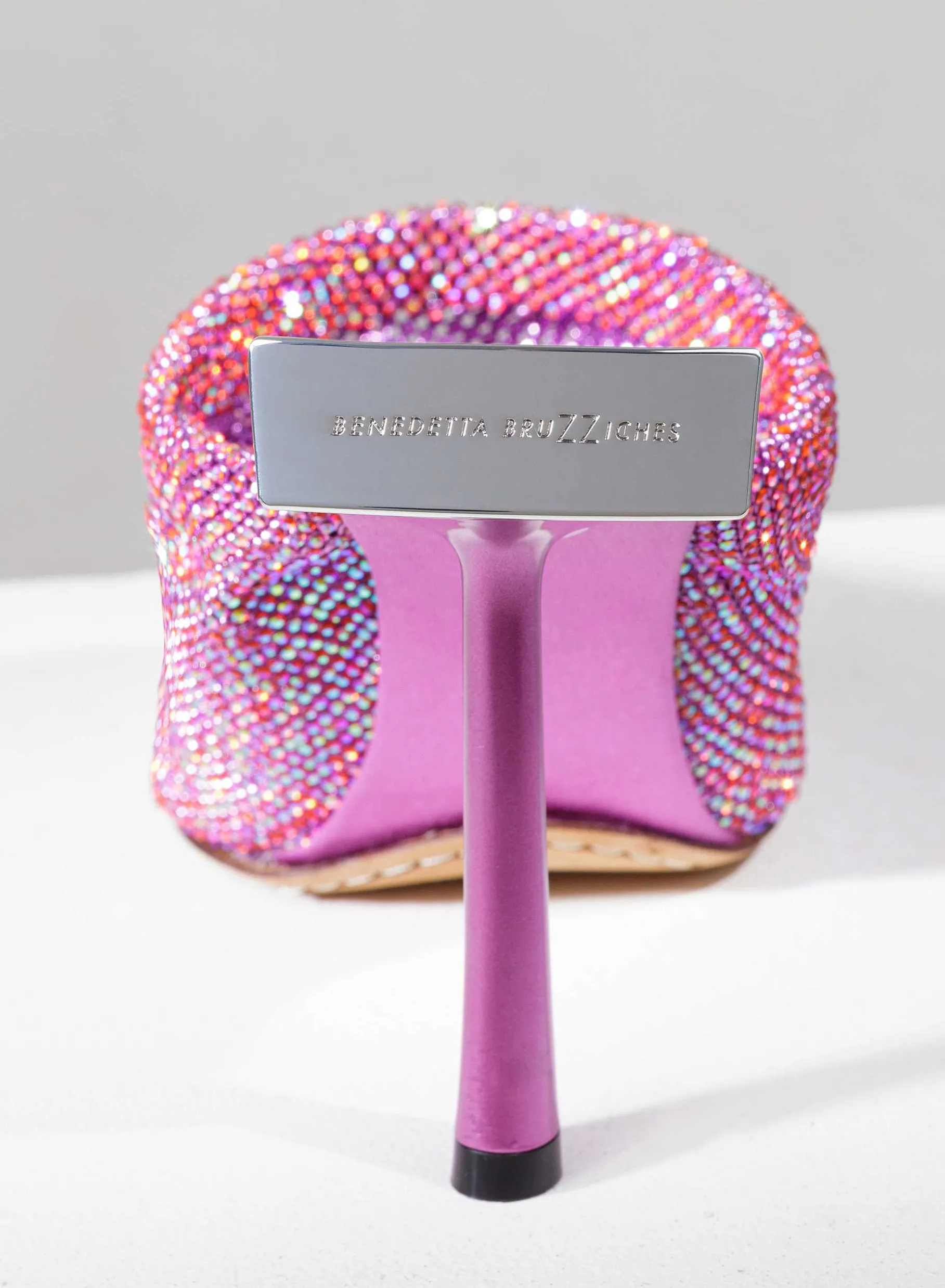 Goliarda Is A Creation With A Satin-Covered Structure And Crystal Mesh Upper. The Heel Of This Object D’Heart Recalls The Shape Of My Iconic Ariel. The Elegant Metal Detail On The Back Highlights The Sculpture-Like Structure Of The Shoe.