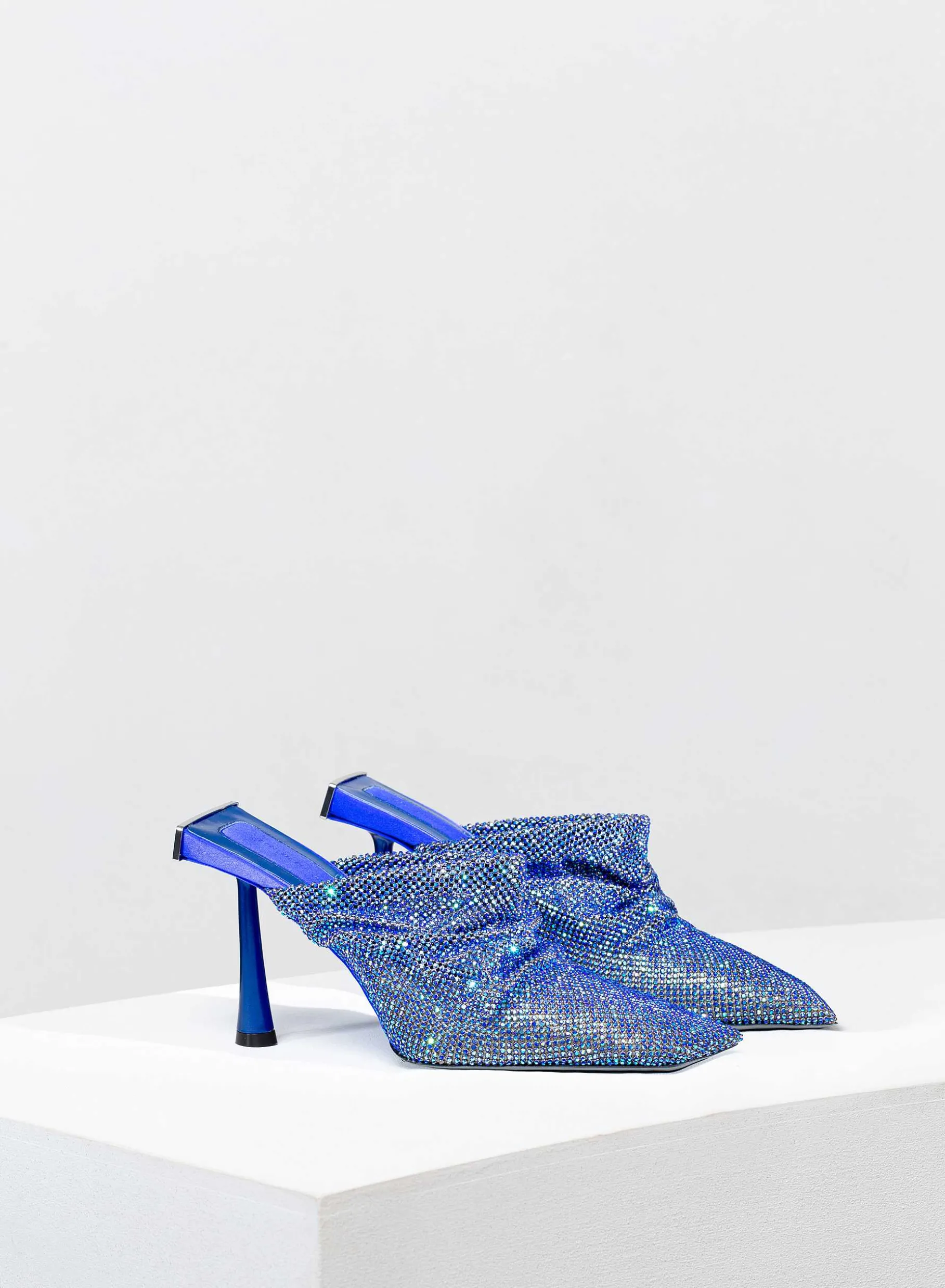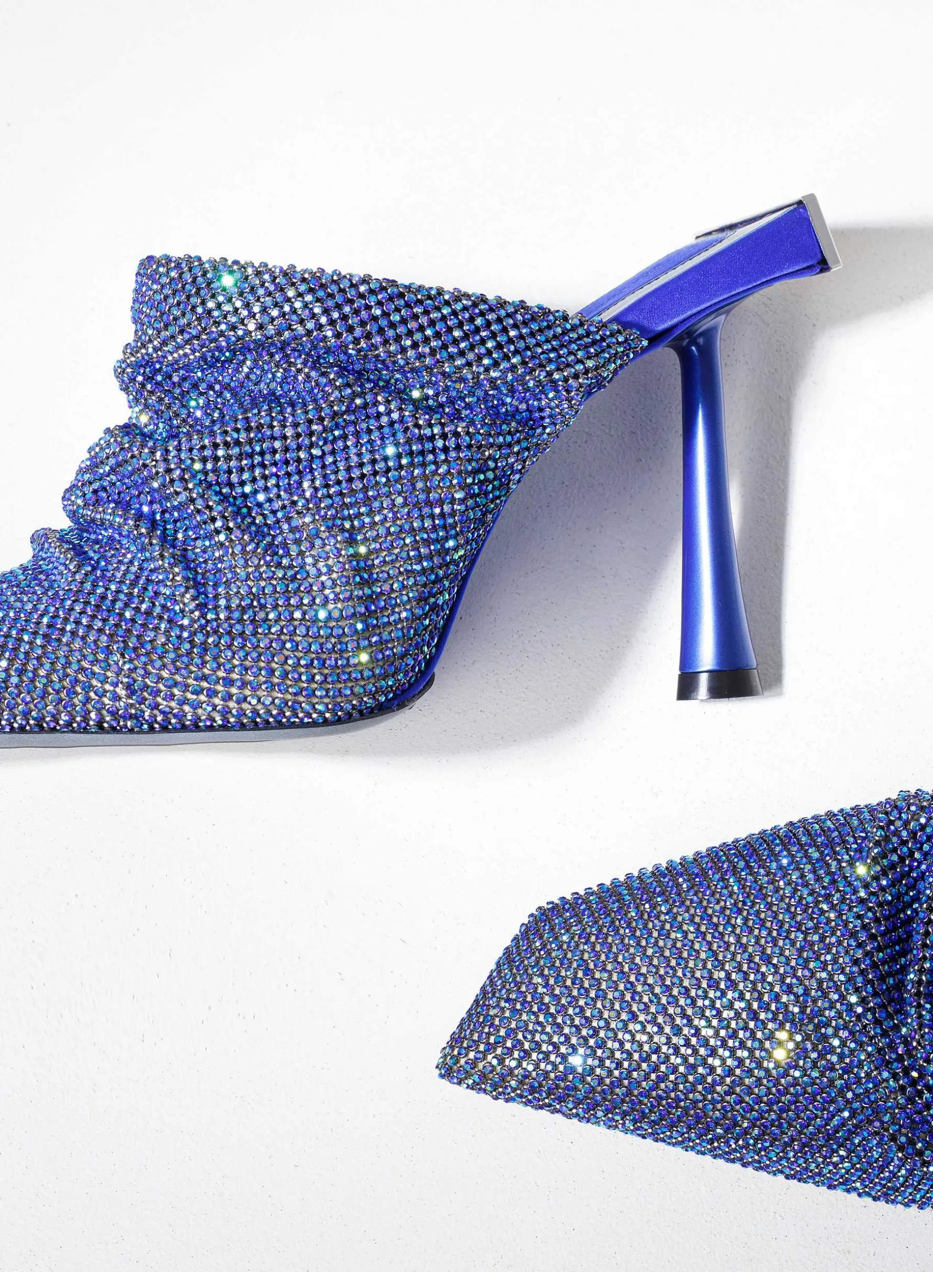 Goliarda Is A Creation With A Satin-Covered Structure And Crystal Mesh Upper. The Heel Of This Object D’Heart Recalls The Shape Of My Iconic Ariel. The Elegant Metal Detail On The Back Highlights The Sculpture-Like Structure Of The Shoe.