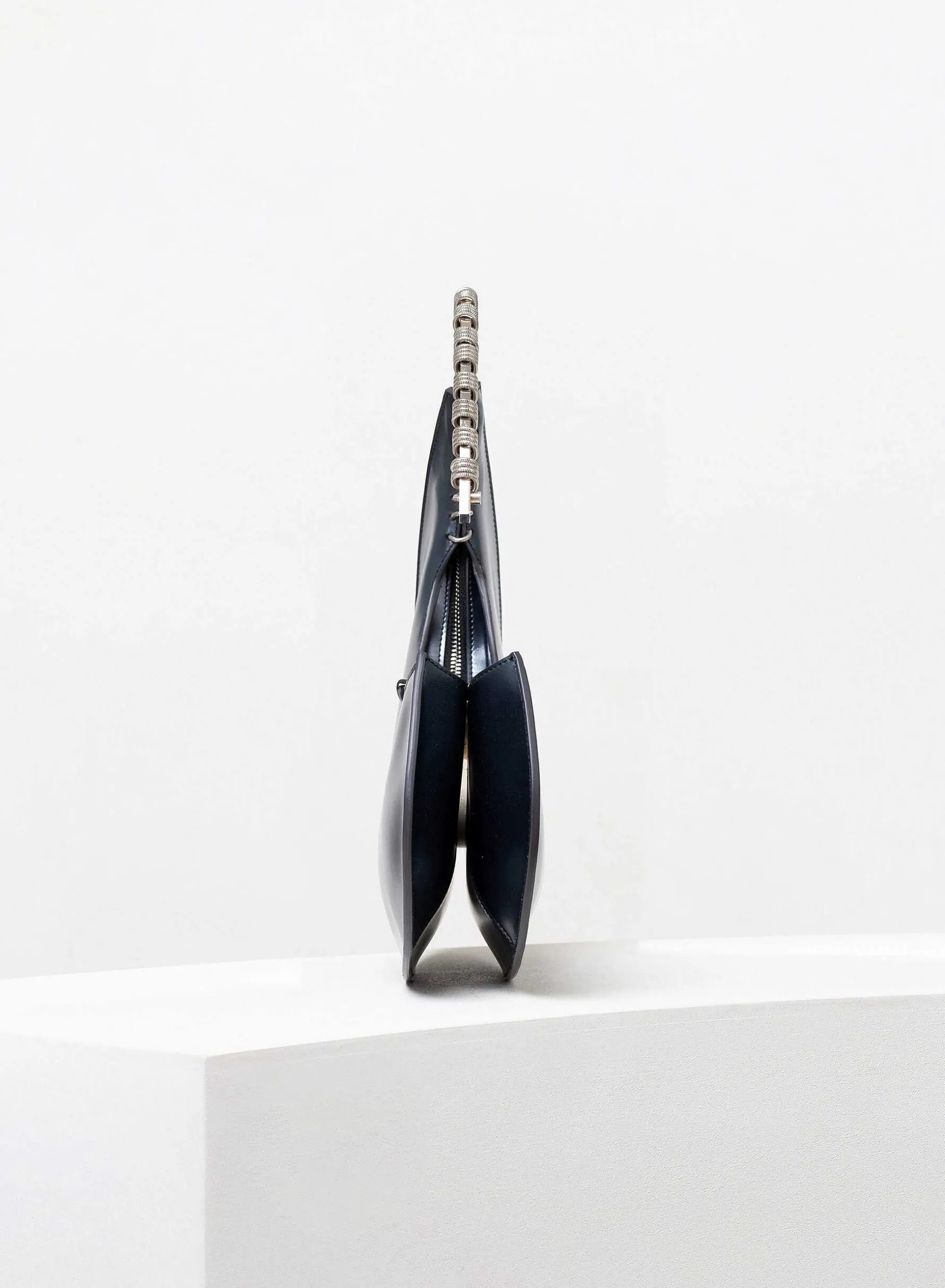 Organic And Technological. Organic Like Sepals Of An Orchid And Technological Together Like The Hulls Of A Catamaran, Raffaella Has A Body That Is A Leather Shell, Potbelly And Sharp, Supported By A Metal Handle Open To “C”, With An Irregular Profile, Obtained By Laser Cutting A Metal Plate Of 4 Mm. A Small Tubular, In Leather Or Metal, Combines Body And Handle As A Basting, Or If We Want As A Tendril On A Vine Shoot.
