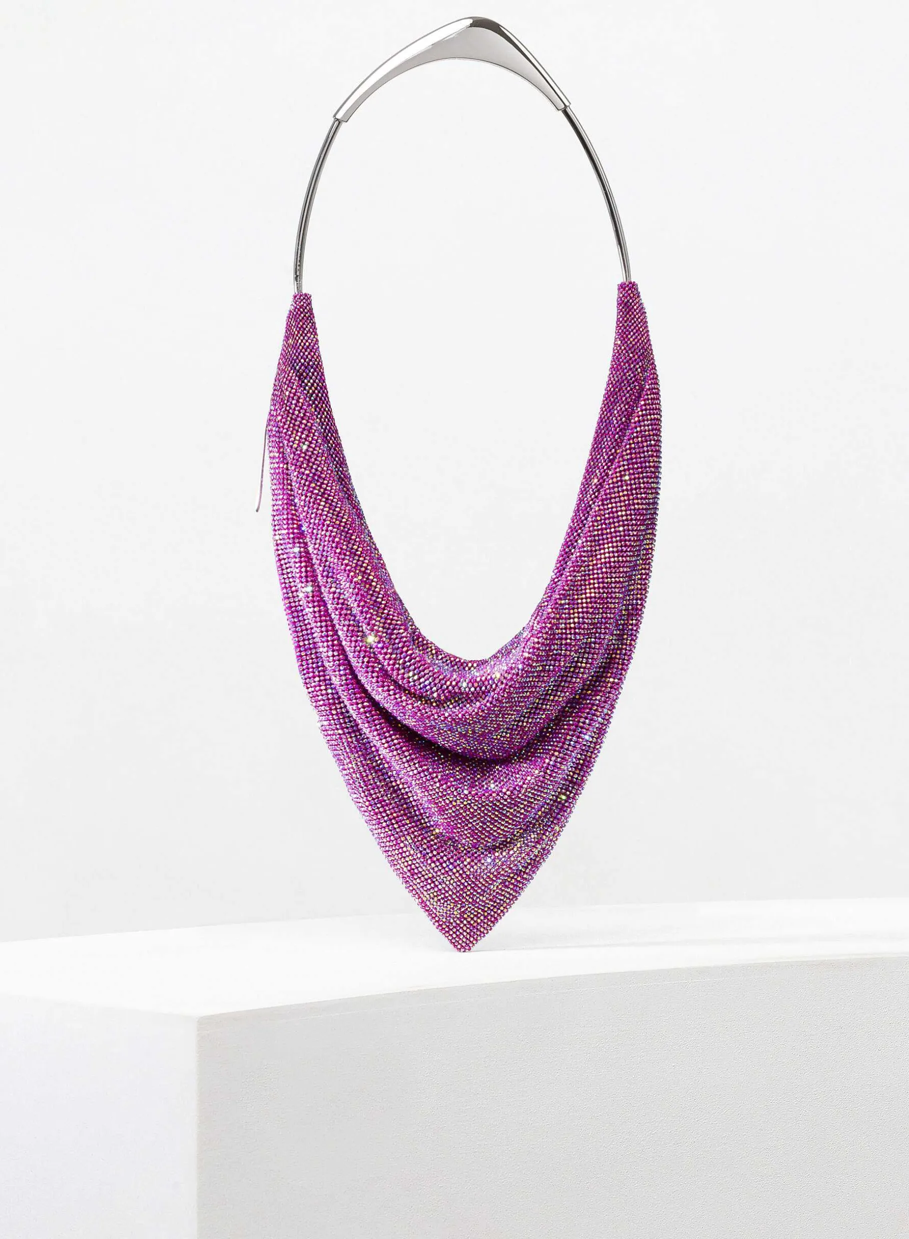 A Metallic Knit Scarf That Fits Perfectly Around A Denim Case Whose Zip Is Accessible On One Side. A Suspended Pocket With A Metal Handle.