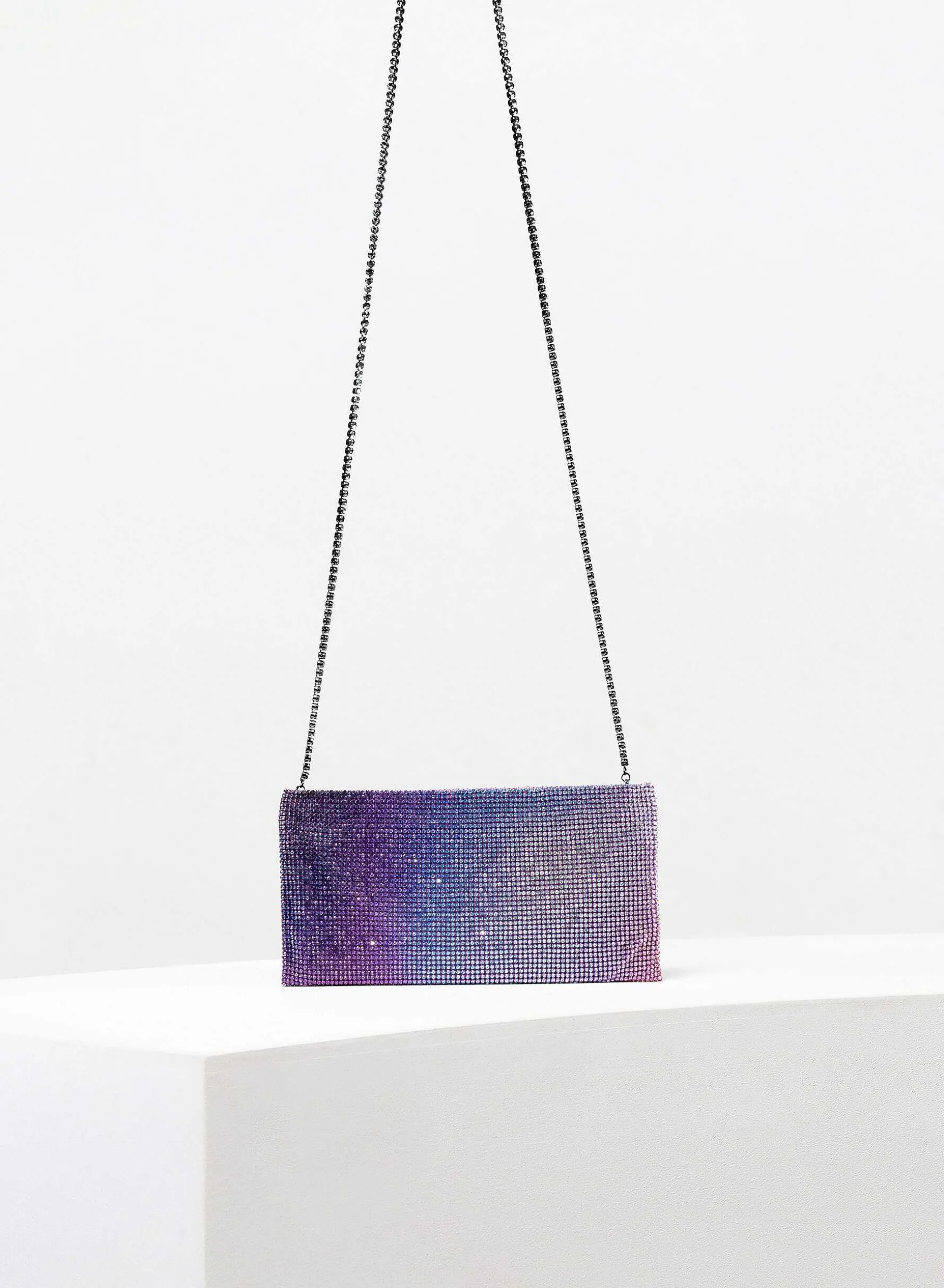 Designed To Keep Only What Is Really Important, It Is A Mini Clutch Made With A Soft Net Of Crystals Lined With Denim, Entirely Hand-Sewn. An Elegant Crystal Shoulder Strap Allows You To Wear It On The Shoulder.