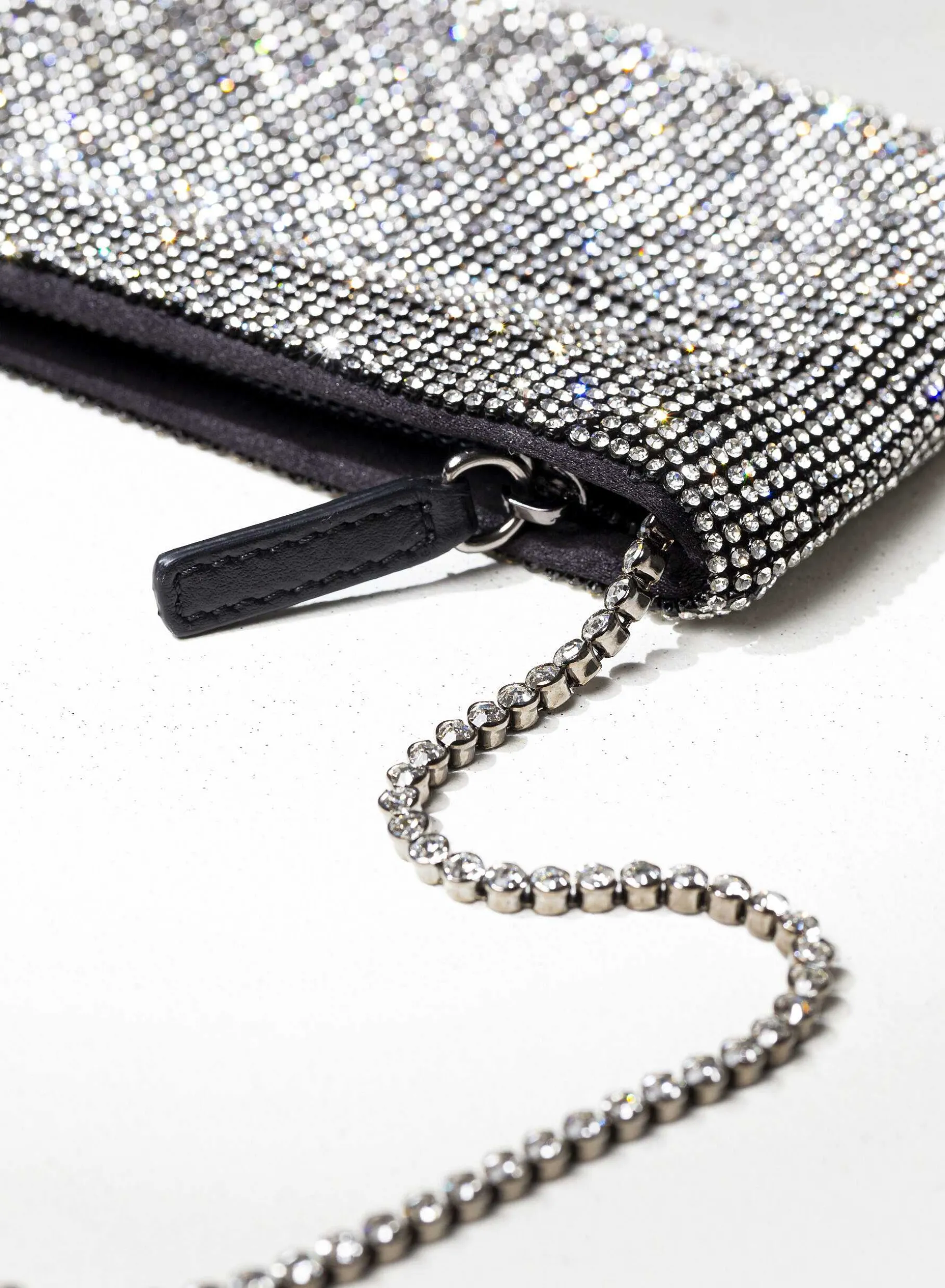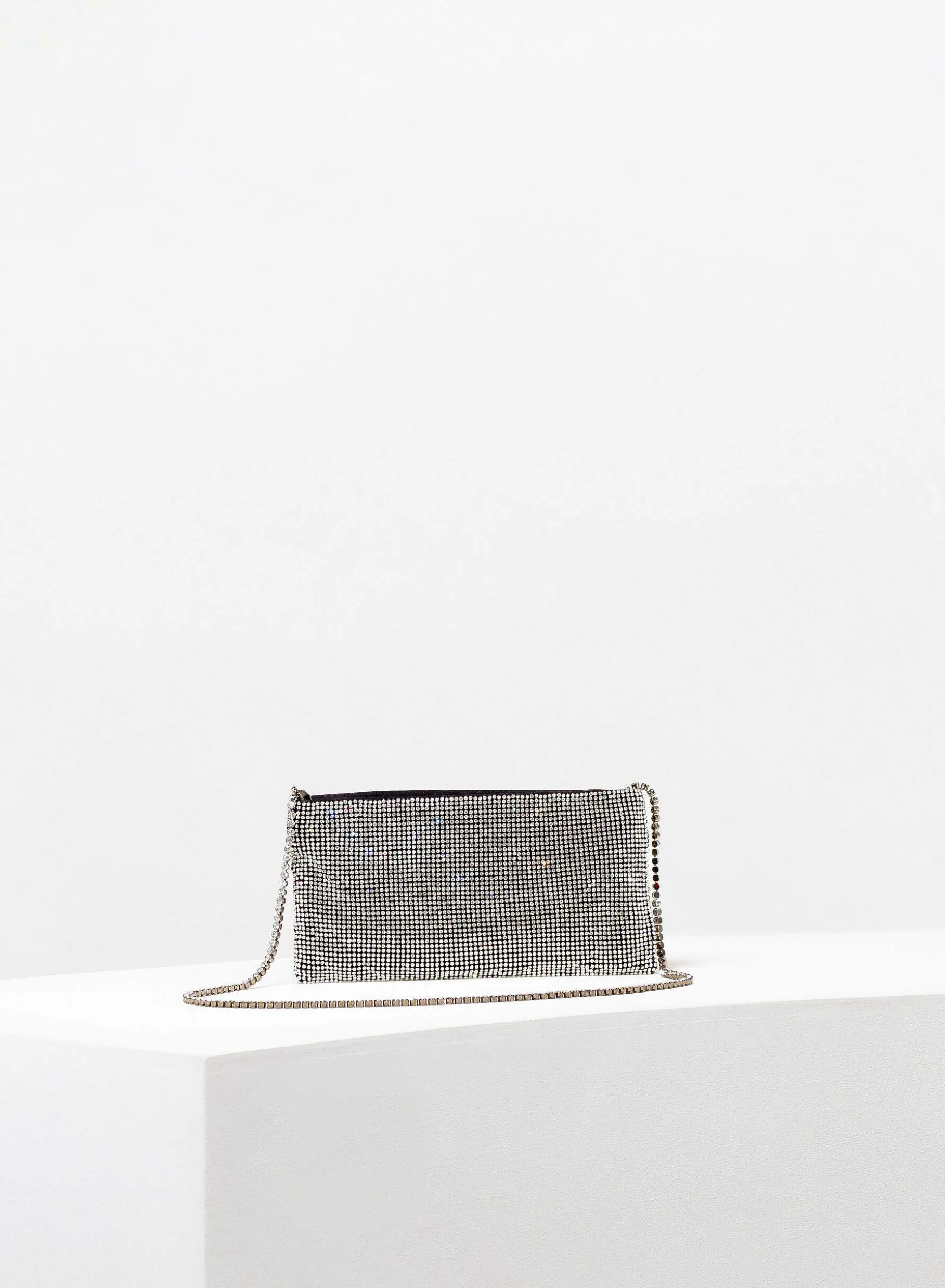 Designed To Keep Only What Is Really Important, It Is A Mini Clutch Made With A Soft Net Of Crystals Lined With Organic Silk Satin, Entirely Hand-Sewn. An Elegant Crystal Shoulder Strap Allows You To Wear It On The Shoulder.